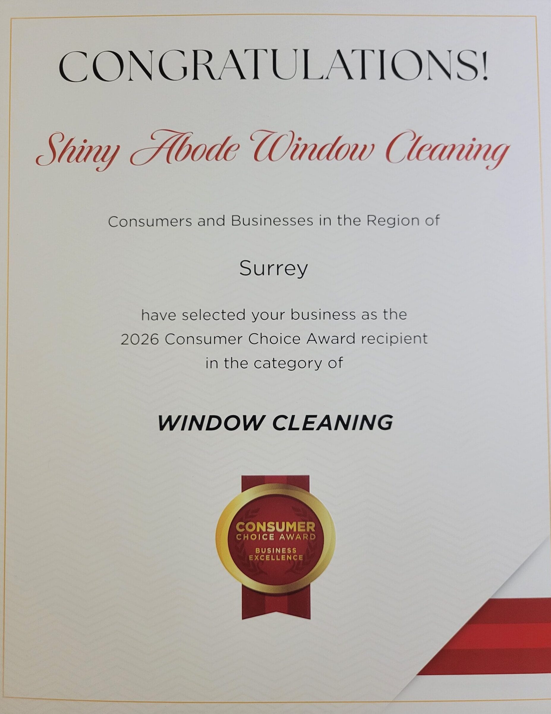 Shiny Abode Window Cleaning came well recommended from a dear friend and I had them clean my exterior window and both sides of my patio railing glass. I live on a golf course and my stunning view from my deck has been completely restored! Can’t thank shiny abode enough for their amazing work and friendly service!
